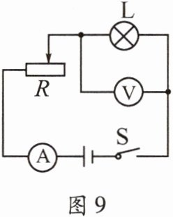 1. (2024·成都)小张用如图9所示的电路测量小灯泡的电阻,电流表和电压表选用小量程。闭合开关前,小张将滑动变阻器R的滑片移到最右端的目的是