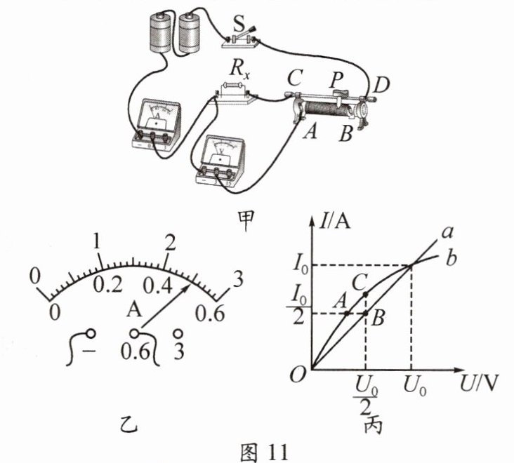 3. 图11甲所示是小明用两节干电池做电源,测量未知电阻Rx阻值的实验电路。