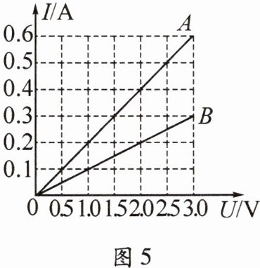 10. 图5所示是电阻A和B的I-U图像。下列说法正确的是(