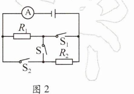 5. 如图2所示,电源电压为10V且保持不变,R₁=10Ω。只闭合开关S时,电流表的示数为0.2A,则R₁两端的电压U₁=
