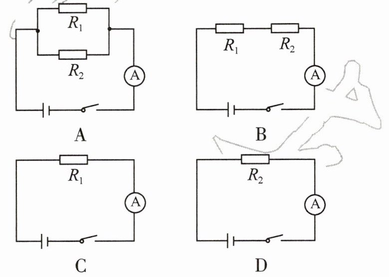 8. (2024·厦门)下列电路图中,已知电源电压相等且R₁<R₂,闭合开关后,电路中电流表的示数最大的是(