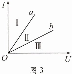 9. (2023·临沂)图3所示为电阻R₁、R₂的I-U关系图线,若将R₁、R₂并联,则并联后总电阻的I-U关系图线将位于(