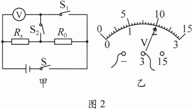 (电压表的示数$U_2$如图2乙所示);(3)计算出$R_x$的阻值为