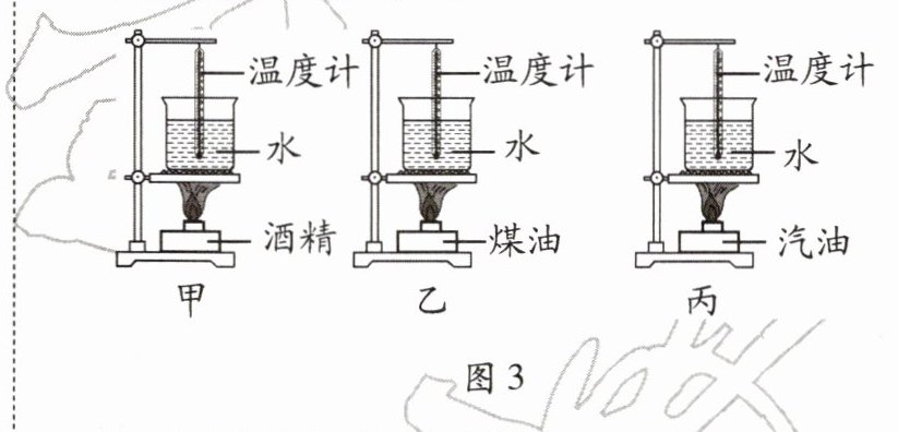 2. 图3所示是小王做实验探究酒精、煤油、汽油的热值时的情景。