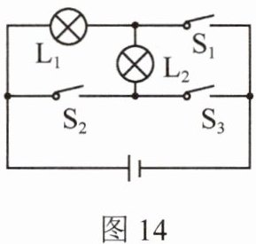 21.如图14所示,要使灯$L_1$和灯$L_2$串联在电路中,应闭合的开关是$