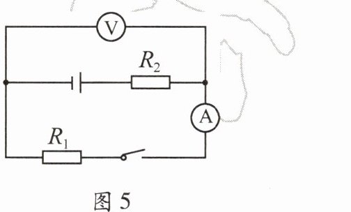 5. 在如图5所示的电路中,R₂的阻值为3Ω。闭合开关后,电压表的示数为6V,电流表的示数为1A,则R₁=