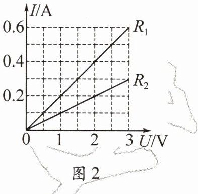 2. 在“探究电流与电压的关系”实验中,某同学根据实验数据分别画出了电阻R₁和R₂的I-U图像,如图2所示,则R₁与R₂的阻值之比为