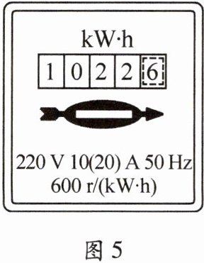 14. (2024·广元)图5所示是小英家电能表表盘的示意图。小英断开家中的其他用电器,将电饭煲单独接在电路中正常工作1 min,发现电能表的转盘转过10 r。下列说法正确的是(
