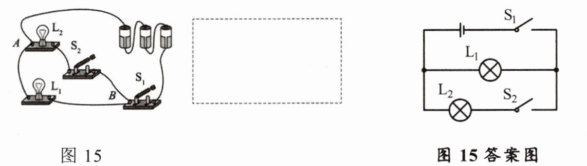 22.根据如图15所示的实物图,在右边虚线框内绘制出相应的电路图。_____