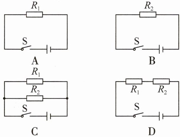 料制成的长度相同、横截面面积不同的两段导体。将它们串联后连入电路,这两段导体两端的电压和电功率的大小关系是 (C
