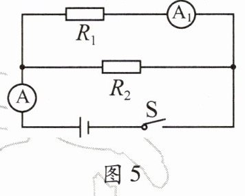 14. 如图5所示的电路,电源电压为6V,电阻R₁的阻值为20Ω。闭合开关S,电流表A的示数为0.5A。求: