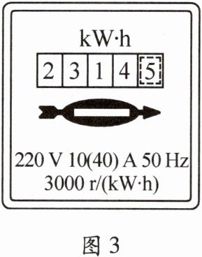 5. (2024·西藏)图3所示是巴桑家的电能表表盘信息,从安全用电的角度考虑,巴桑家同时使用的用电器最大总功率不应超过
