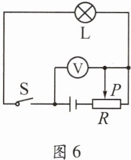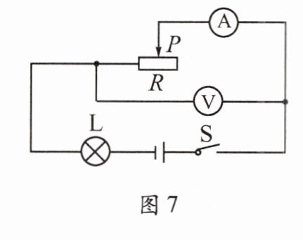 4. 如图7所示的电路,电源电压保持不变,小灯泡上标有“9 V 5.4 W”的字样。闭合开关后,小灯泡L正常发光,电压表V的示数为6 V。设小灯泡L的电阻不变,求: