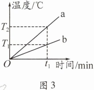 11. 图3所示是根据“探究不同物质吸热能力”实验所得数据绘制的a、b两种物质的温度-时间图像。实验中,两种物质的质量、初温相同,选用的加热器相同。由图像可知,下列判断正确的是 (