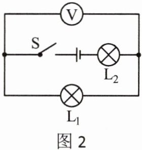 7.如图1所示电路,电源电压为5V,当开关S闭合时,却只有一只灯泡发光,且电压表示数为0。由此可以判断电路的故障可能是(