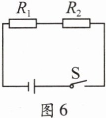 11. 如图6所示的电路,电阻$R_{1}=4Ω$,$R_{2}=2Ω$。当开关闭合时,下列说法正确的是 (