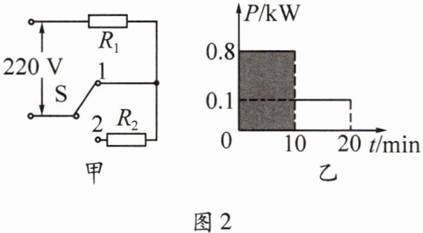 2. 某型号电饭煲有“加热”和“保温”两种功能,图2甲所示为其内部电路原理图。当开关S接触点1时,该电饭煲处于