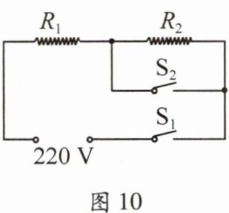 15. (2022·常州)某型号电饭锅有加热和保温两挡,其电路示意图如图10所示。在220 V电压下,其加热挡功率为1100 W,保温挡功率为20 W。