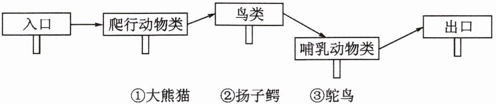 7. 乐乐按照规定路线(如图)在动物园参加研学活动。①~③动物的“出场”顺序依次是(