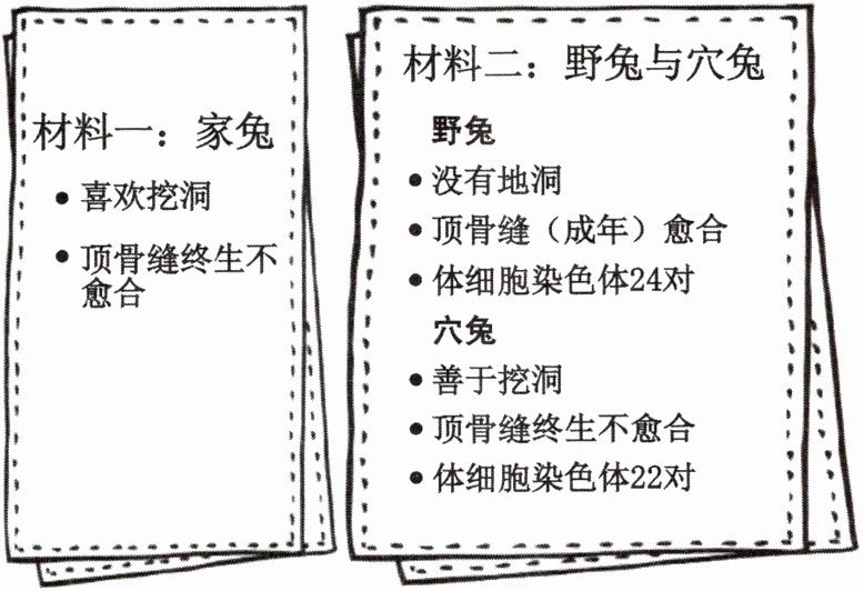 (2) ①穴兔 ②家兔与穴兔都善于挖洞 (或家兔与穴兔的顶骨缝终生不愈合) ③检测家兔的染色体数目