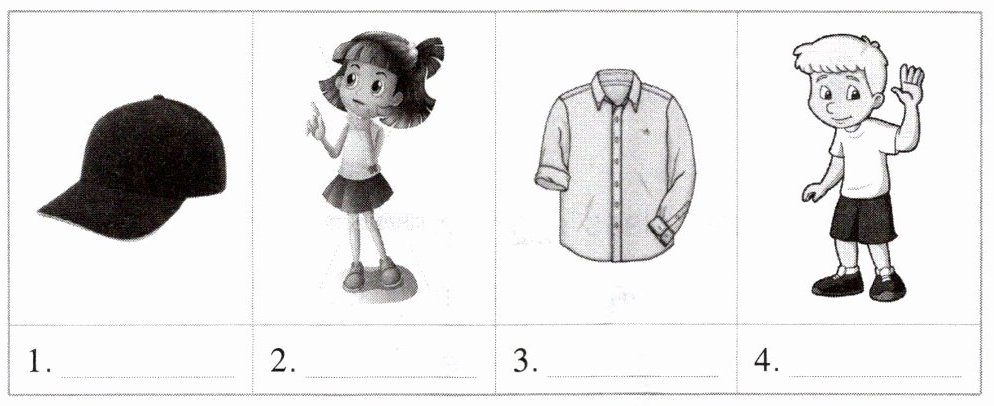 Here are some clothes we wear in summer. Write down their names according to the pictures and words.