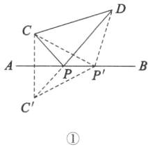 (1)如图①,作点C关于直线AB的对称点C',连接C'D交AB于点P,则点P就是所要求作的点.