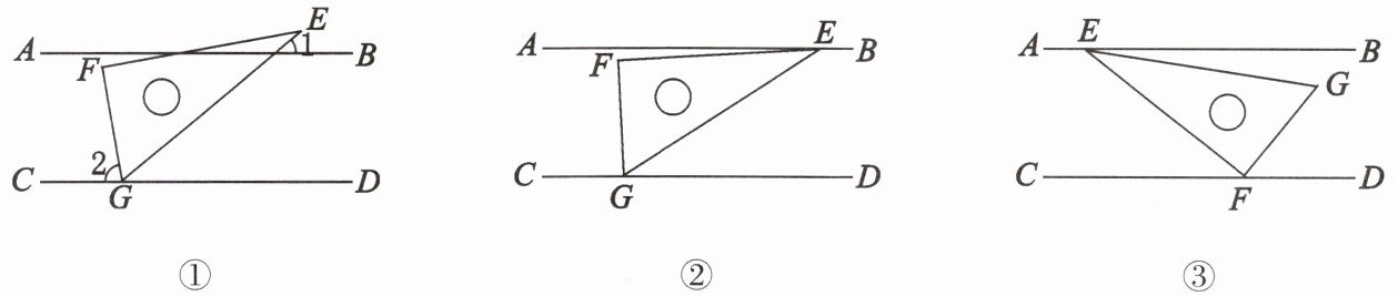 (2) 如图②,$△EFG$的顶点 E,G 分别在 AB 和 CD 上,请你探索$∠AEF$与$∠FGC$的数量关系;