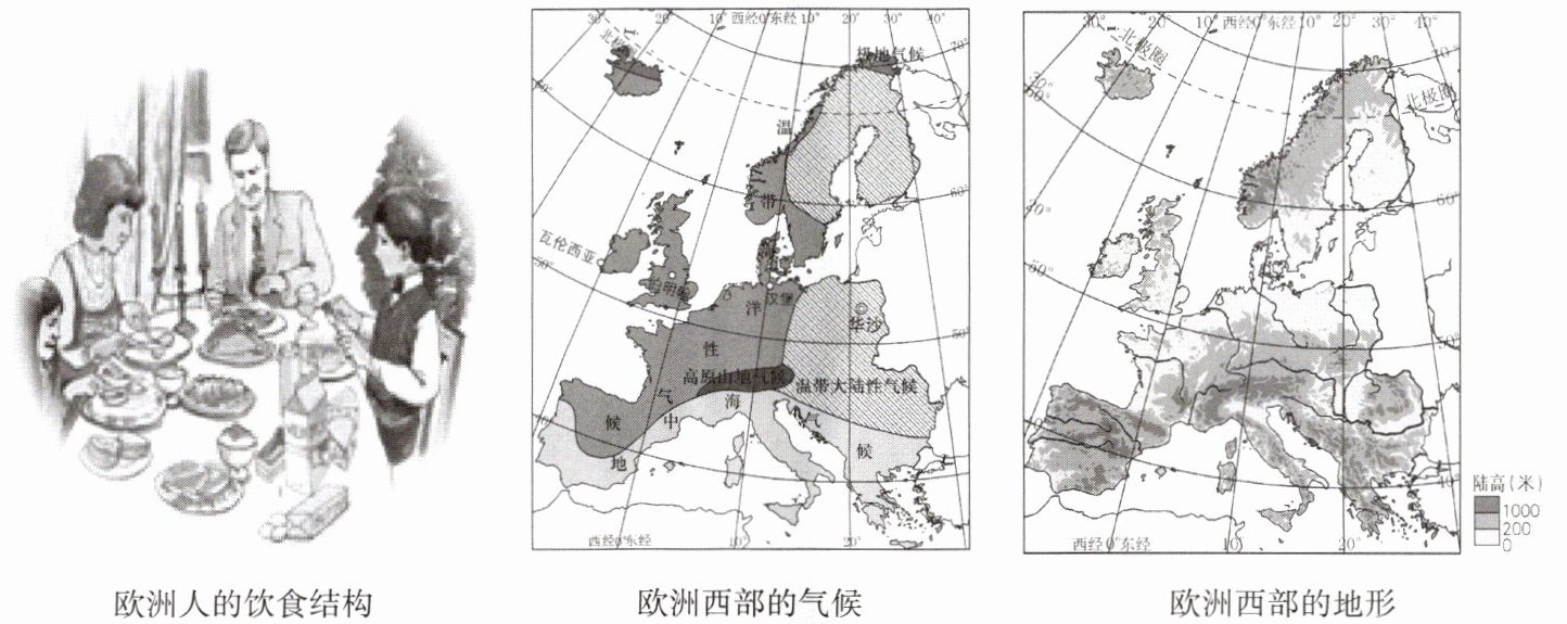实践资料 欧洲西部的气候特点与地形有关,而且欧洲西部的畜牧业发达。民以食为天。不管是食物的烹饪方法还是口味,欧洲西部的饮食文化与东方有着很大的差异。牛排、奶酪是欧洲人的主要食物之一,他们的日常饮食以牛羊肉和乳制品为主。