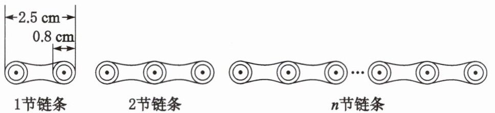 7. 如图,某品牌自行车每节链条的长度为2.5cm,交叉重叠部分的圆的直径为0.8cm。