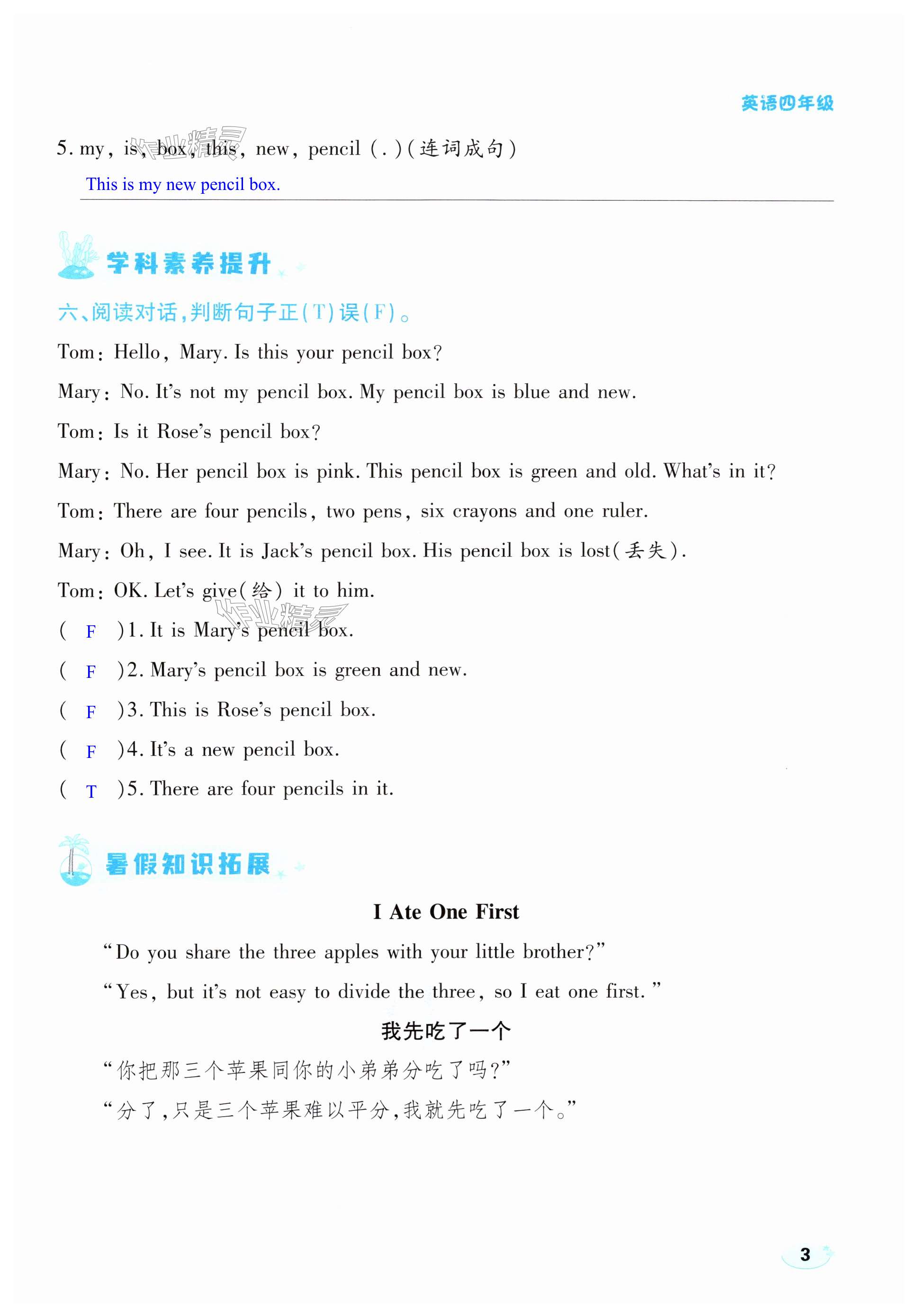 注:目前有些书本章节名称可能整理的还不是很完善,但都是按照顺序排列的,请同学们按照顺序仔细查找。练习册 2025年乐享暑假生活四年级英语冀教版 答案主要是用来给同学们做完题方便对答案用的,请勿直接抄袭。