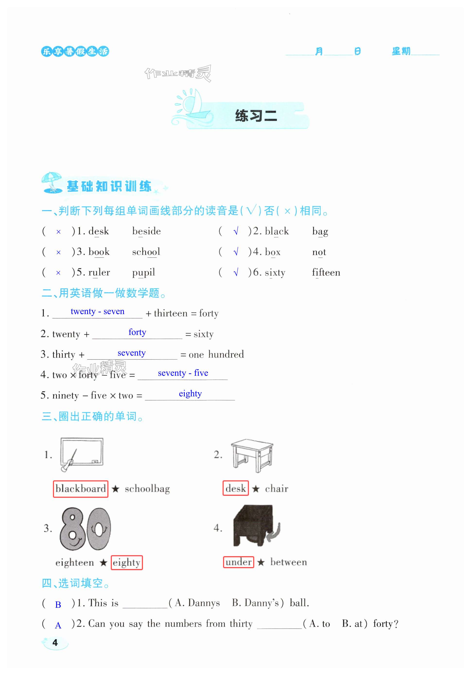 注:目前有些书本章节名称可能整理的还不是很完善,但都是按照顺序排列的,请同学们按照顺序仔细查找。练习册 2025年乐享暑假生活四年级英语冀教版 答案主要是用来给同学们做完题方便对答案用的,请勿直接抄袭。