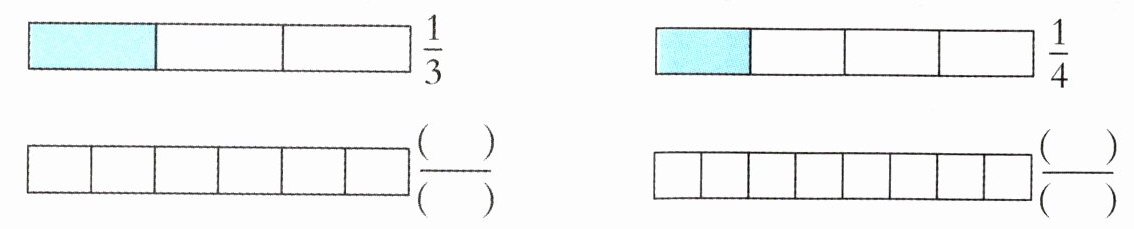 三 涂色表示与给定分数相等的分数。