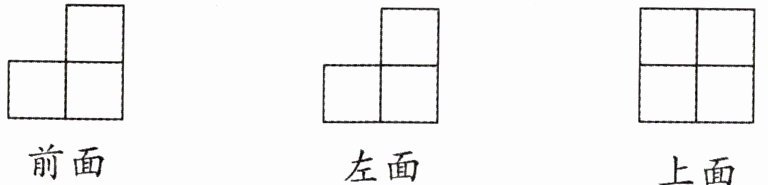 2.陈凯同学在原图的基础上继续用这种小正方体摆几何体,从前面看,看到的面正好是一个正方形。他再摆上的小正方体是多少个?请举出一个例子,可以用写算式或者画图的方法说明。