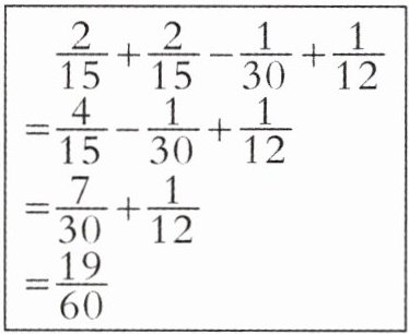 2. 小芳做语文作业用了$\frac {3}{10}$小时,做英语作业比做语文作业少用了$\frac {2}{15}$小时。小芳做这两种作业一共用了(