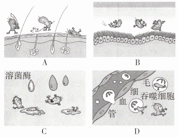 的保护作用。图 B 所示是呼吸道黏膜上的纤毛的清扫