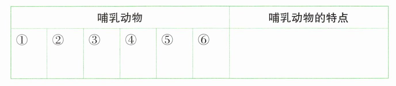 将自己熟悉的哺乳动物填在下页表中,并说一说它们的特点。