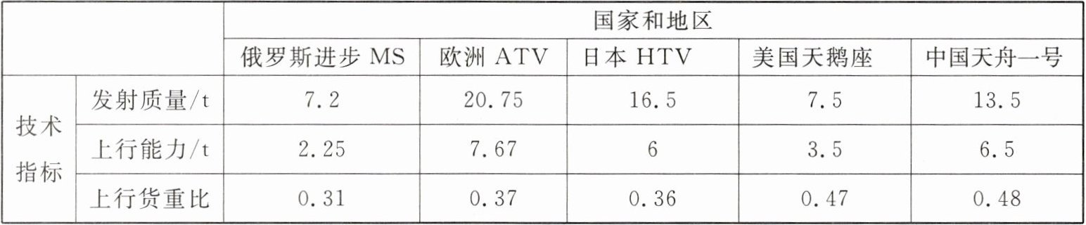 (2)①是全球首个掌握全自主快速交会对接技术的飞船;②在航天领域首次实现了 100V 高压锂离子蓄电池组在轨应用;③货物运送上行能力位居第二;④货物运送上行货重比最高。