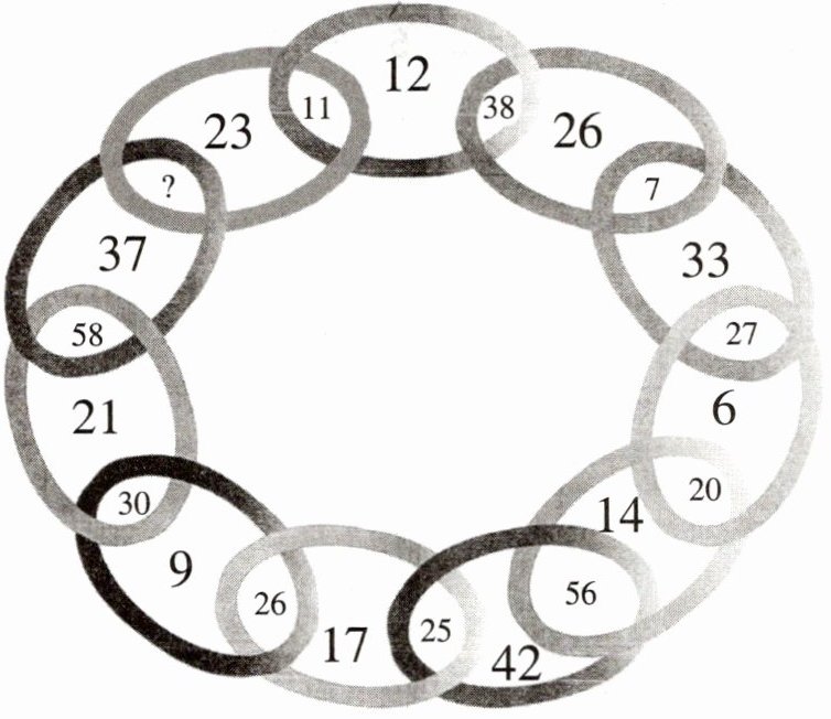 3. 这个闭合的连环中的数字是有规律的,其中有一个地方有问号,在问号处填上正确的数字.