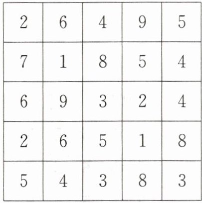 2. 将数阵中的5个数去掉,使每横行、竖行的和相等,去掉的5个数之和也与之相等.应该去掉哪几个数字?