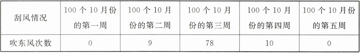 赤壁大战期间的五周在百年中的刮东风次数统计表