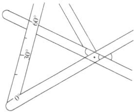 1. 当被测物体的角不大于90°时,用卡口1卡住被测物体,从角度尺上直接读出被测角的度数。例如现在的读数是60°。
