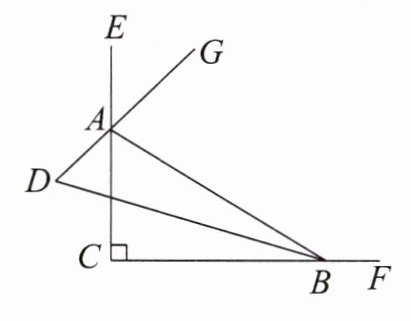 11. 如图,∠ECF= 90°,线段AB的端点分别在CE和CF上,BD平分∠CBA,并与∠EAB的平分线AG所在的直线交于点D.