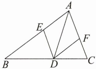 在$\triangle AED$和$\triangle AFD$中,$\begin{cases}\angle EAD=\angle FAD\\AD = AD\\\angle ADE=\angle ADF\end{cases}$($ASA$判定定理:两角及其夹边对应相等的两个三角形全等)。