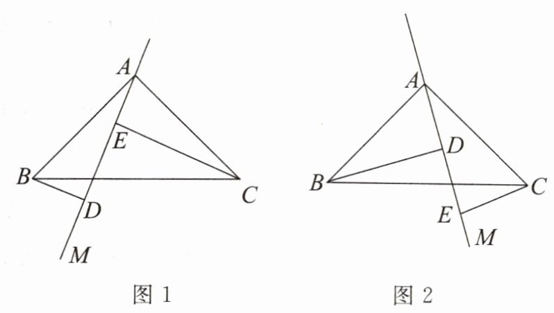 因为$BD\perp AM$,$CE\perp AM$,$\angle BAC = 90^{\circ}$,所以$\angle ADB=\angle AEC = 90^{\circ}$,$\angle BAD+\angle CAE=\angle BAD+\angle ABD = 90^{\circ}$,则$\angle ABD=\angle CAE$。