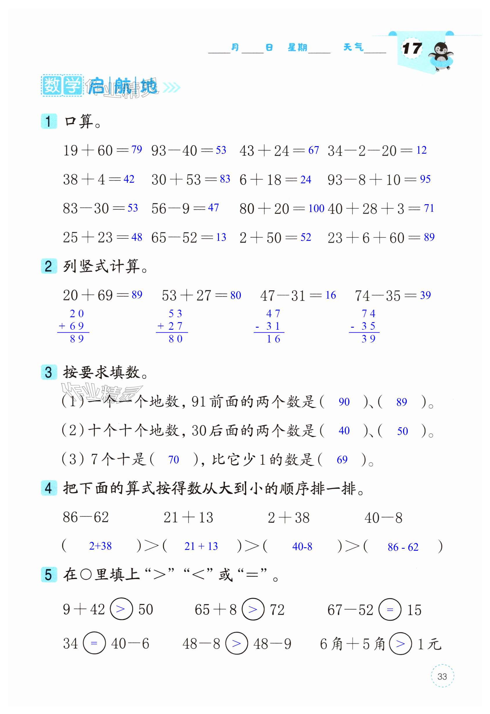 注:目前有些书本章节名称可能整理的还不是很完善,但都是按照顺序排列的,请同学们按照顺序仔细查找。练习册 2025年暑假学习乐园浙江科学技术出版社一年级数学 答案主要是用来给同学们做完题方便对答案用的,请勿直接抄袭。