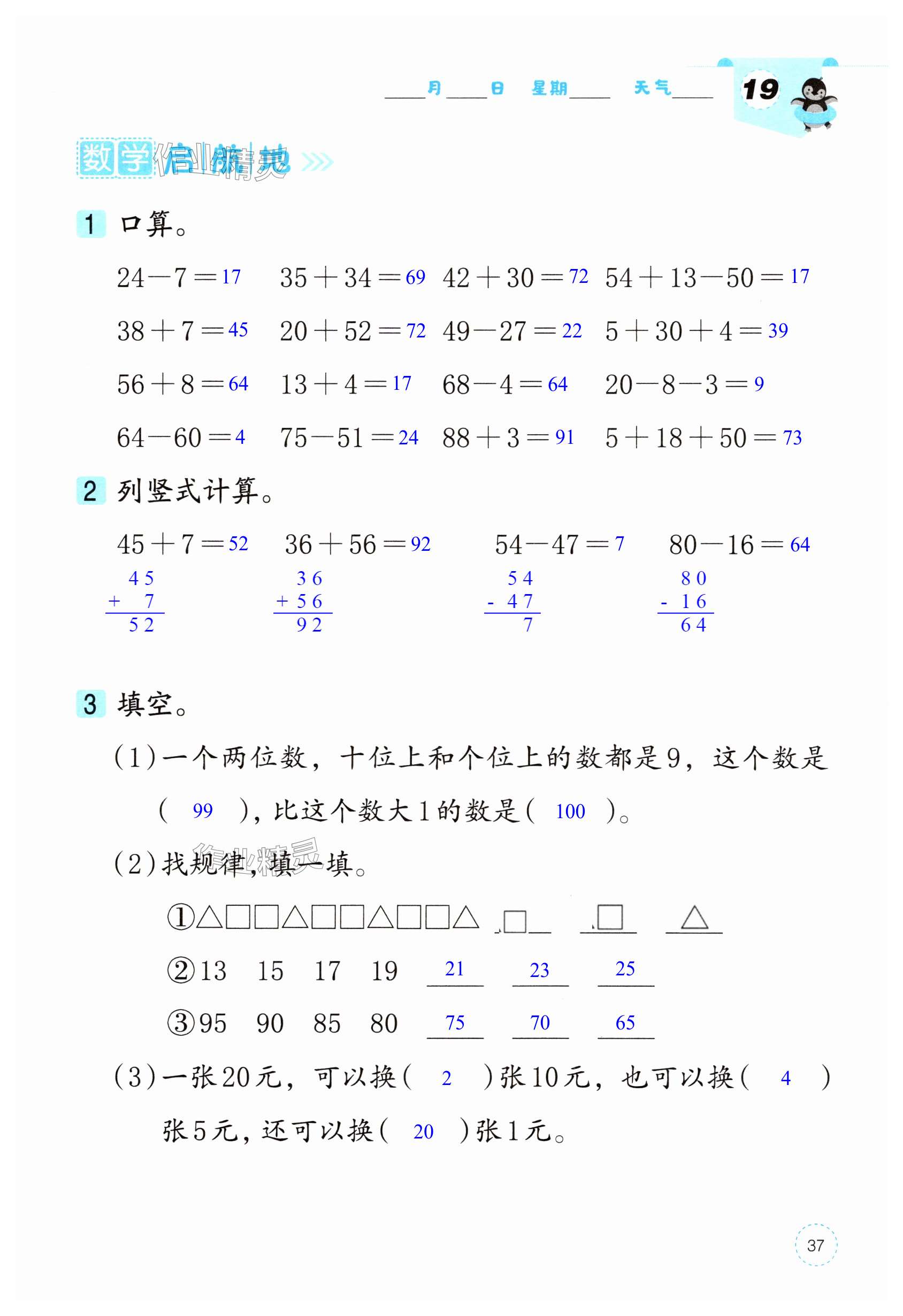 注:目前有些书本章节名称可能整理的还不是很完善,但都是按照顺序排列的,请同学们按照顺序仔细查找。练习册 2025年暑假学习乐园浙江科学技术出版社一年级数学 答案主要是用来给同学们做完题方便对答案用的,请勿直接抄袭。