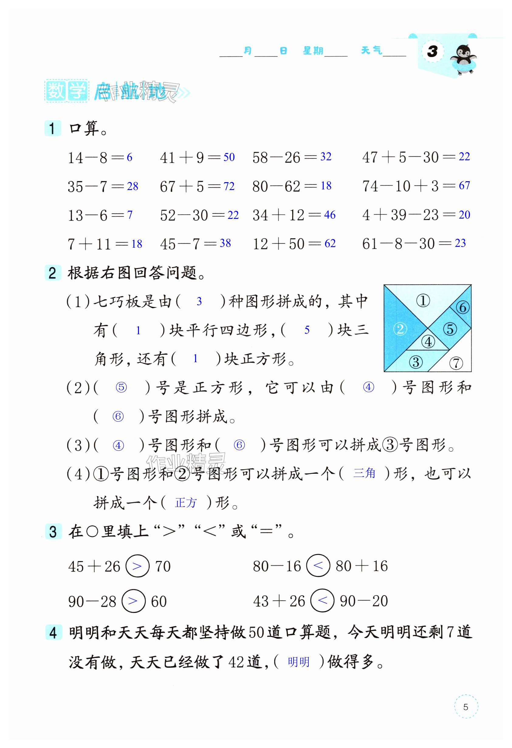 注:目前有些书本章节名称可能整理的还不是很完善,但都是按照顺序排列的,请同学们按照顺序仔细查找。练习册 2025年暑假学习乐园浙江科学技术出版社一年级数学 答案主要是用来给同学们做完题方便对答案用的,请勿直接抄袭。