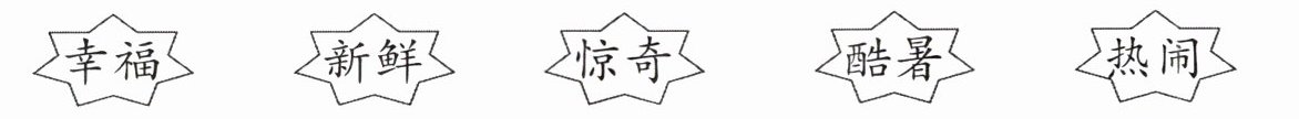$\begin{array}{|c|}\hline rè\ nào \\\hline\end{array}$ $\begin{array}{|c|}\hline jīng\ qí \\\hline\end{array}$ $\begin{array}{|c|}\hline kù\ shǔ \\\hline\end{array}$ $\begin{array}{|c|}\hline xìng\ fú \\\hline\end{array}$ $\begin{array}{|c|}\hline xīn\ xiān \\\hline\end{array}$