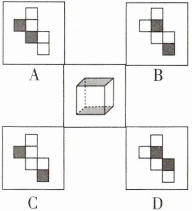 3 周围4个选项的图形,哪一个折叠起来会成为中心的正方体呢?(