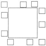 约翰来到一家西式餐厅应聘,面试官出了一道题目来考他:“如图,请在正方形的餐桌周围摆10把椅子,使桌边每一面的椅子数都相等”.约翰想了很久都没有解答出来,请问该如何摆放呢?(大正方形表示餐桌,小方块表示椅子)